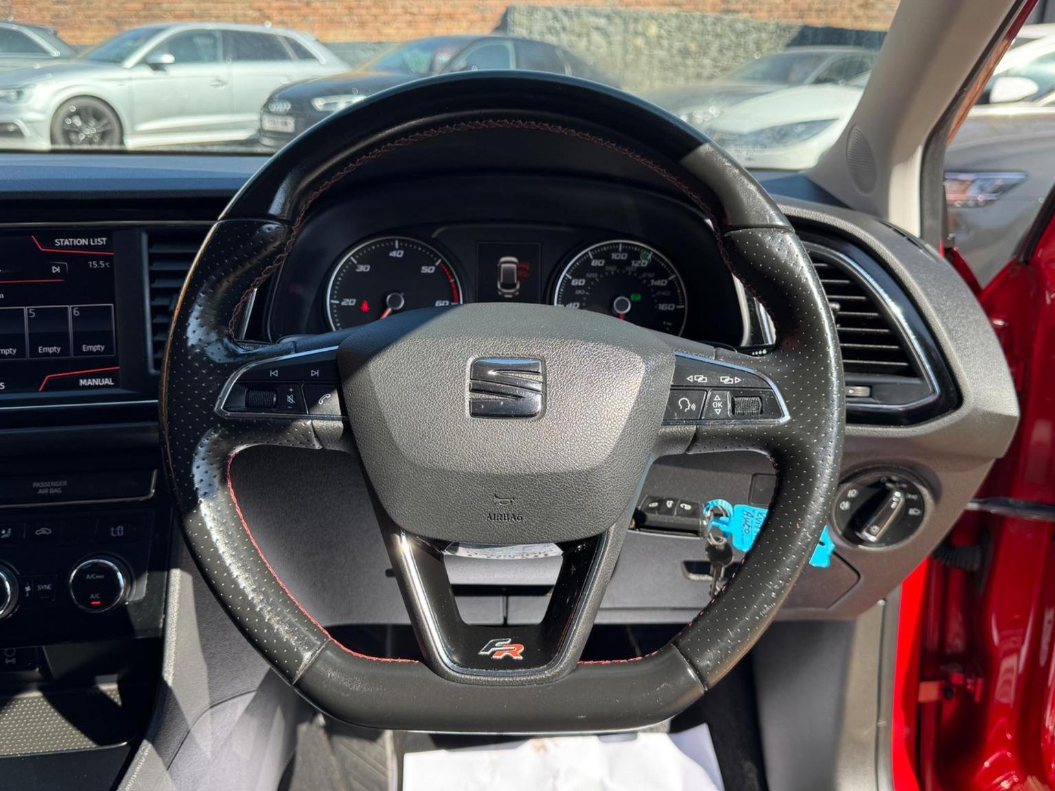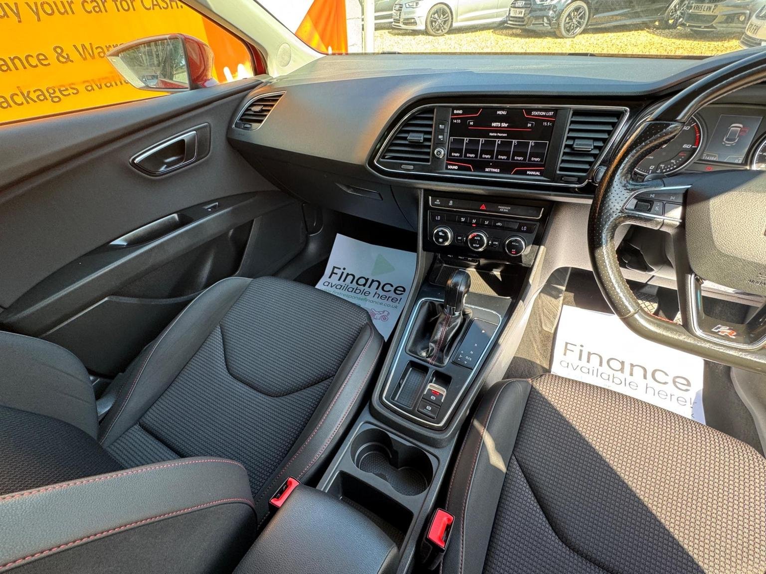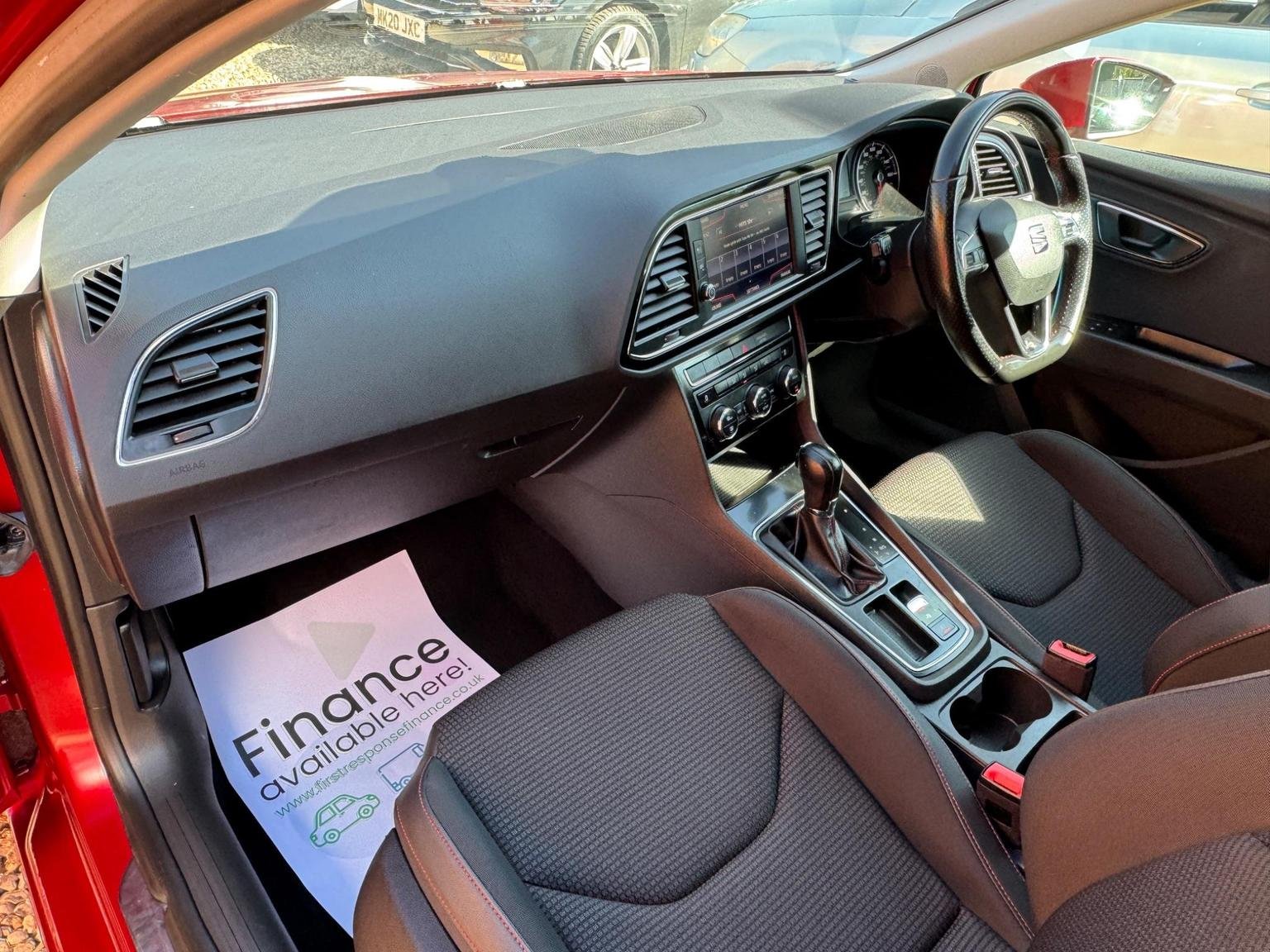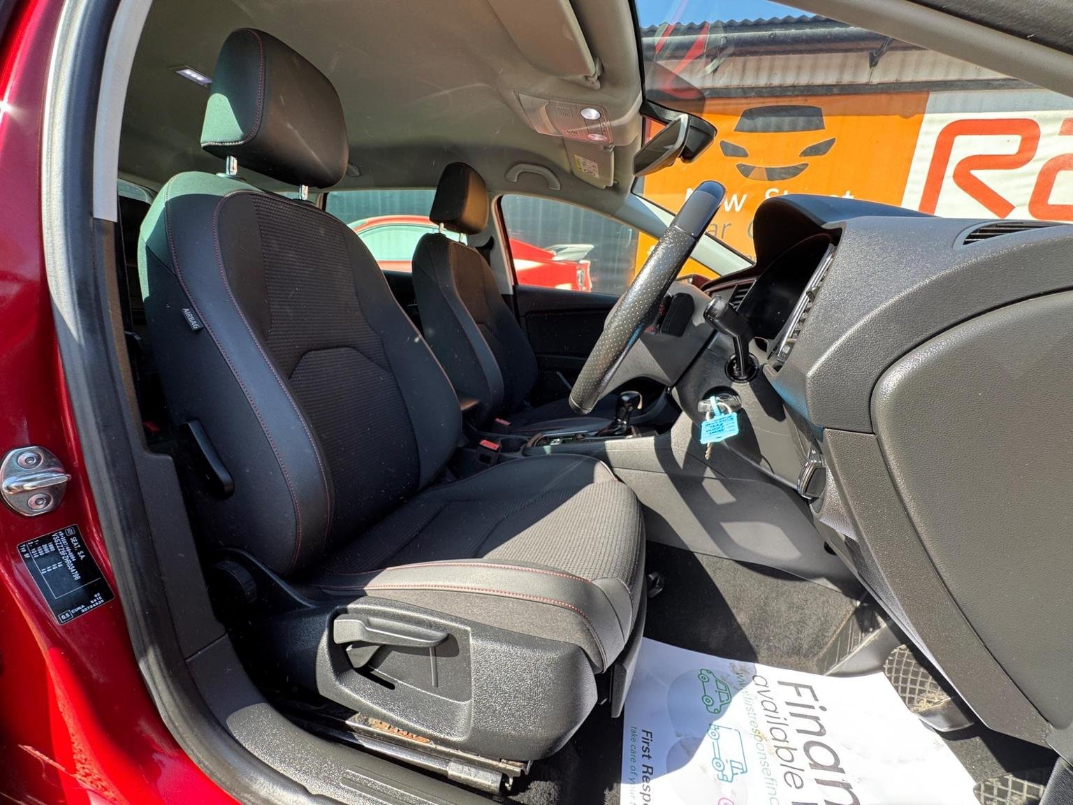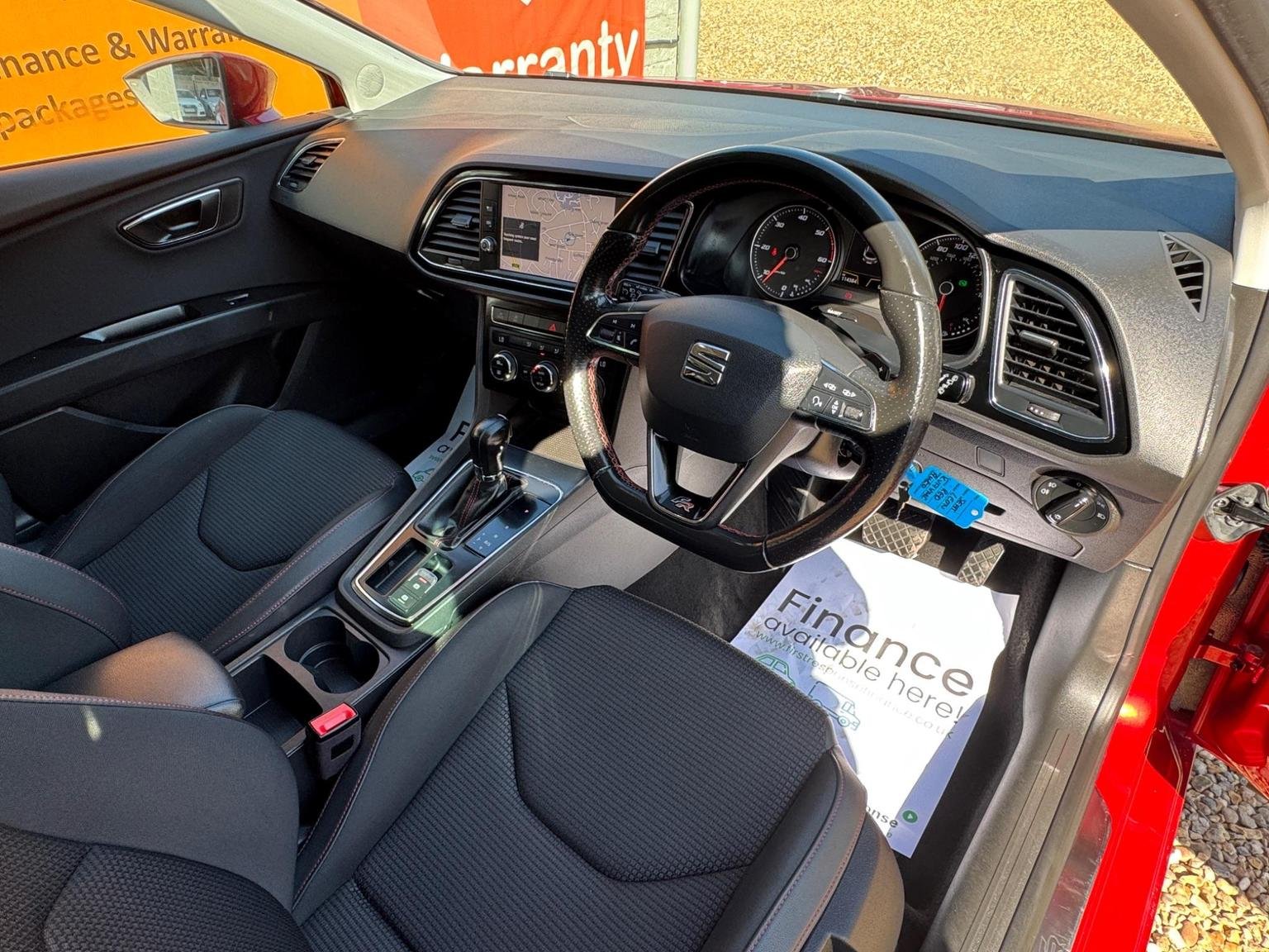 Electric Parking Brake Including Autohold Function, Electrically Folding Door Mirrors, Electro-Mechanical Power Steering, Electronic Differential Lock System - XDS, Emergency Tyre Repair Kit, Exhaust Pipe - Twin, Front Assist with Pedestrian Protection, Front Seat Back Storage Pockets, Front Sports Seats, Front and Rear Electric Windows, Fuel Filler Flap linked to Central Locking, Full LED Headlights, Full Link, Head Restraints - Height Adjustable Front, High Centre Console, High Gloss Black B and C Pillars, Hill Hold Control, ISOFIX Points in Outer Rear Seats with Top Tether Anchorage Points, Illuminated Glovebox, Instrument Lighting with Brightness Control, Interior Chrome Detailing, Lights Left On Warning Buzzer, Low Fuel Warning Light, Lower Suspension - 15mm, Luggage Compartment Cover, Media System Plus, Multi Coloured Ambient Lighting, Multi-Collision Braking System, Navigation System, Outside Temperature Gauge, RPM Counter, Radiator Grille Frame in Chrome, Radiator Grille in Black, Reading Lights Front and Rear with Ambient Spots - Boot Lights and Illuminated Foot Area, Rear Parking Sensors, Remote Central Locking with Deadlocks, SEAT Drive Profile, Seatbelt Reminder - Front, Seats - Passenger Lumbar Adjustment, Split Folding Rear Seats - 60-40, Sports Suspension, Steering Wheel - Flat-Bottomed Perforated Leather with Red Stitching and FR Logo, Steering Wheel-Mounted Gearshift Paddles, Storage Box Under Driver and Front Passenger Seat, Trip Computer, Two Remote Keys with Window Open-Close - Door Mirror Folding and Boot Opening Functionality, Two Side Nets - Left and Right, 12V Power Supply in Centre Console, 17in Alloy Wheels - Dynamic, 3.5in Drivers Display, 7 Airbags, ABS - Anti-Lock Braking System - TCS - Traction Control System, Active Front Head Restraints and 3 Rear Head Restraints, Alarm - Perimeter and Interior Monitoring with Back-up Horn and Tow-Away Protection, Aluminium Front Door Sill Trims with FR Logo, Body-Coloured Door Handles, Body-Coloured Door Mirrors with Integrated LED Indicators, Bumpers - Exclusive FR Front and Rear, Chrome Loading Sill, Cruise Control, Dark Tinted Rear Windows, Driver and Passenger Seat Height Adjustment, Driver and Passenger Sunvisor with Covered and Illuminated Mirrors, Drivers Seat Lumbar Adjustment, Dual Zone Climate Control, ESC - Electronic Stability Control and Tyre Pressure Warning Light Indicator